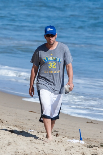 Ο Sandler φορούσε ένα μακρύ λευκό μαγιό και γκρι μπλούζα ενώ δεν αποχωρίστηκε στιγμή το καπέλο του, καθώς δεν ήθελε ούτε να γίνει αναγνωρίσιμος από τον κόσμο αλλά ούτε και να τον χτυπήσει ο ήλιος!