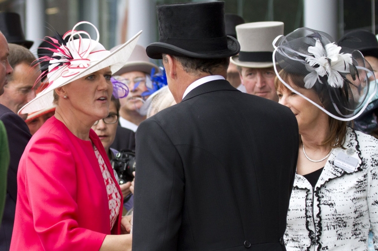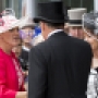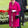 Η βασίλισσα έφτασε συνοδευόμενη από τον σύζυγο της, τον πρίγκιπα Φίλιππο, με άμαξα φορώντας ένα φούξια παλτό και φυσικά ασορτί καπέλο. Μιας και είναι το έθιμο τέτοιο που θέλει όσους βρίσκονται εκεί να φορούν καπέλο.