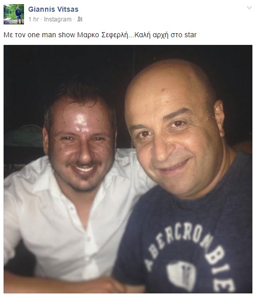 Μπορεί να μην έβγαλε ντουντούκα για να ανακοινώσει τη μεταγραφή του όμως ο αρχισυντάκτης του περιοδικού «ΕΓΩ» Γιάννης Βίτσας τη «μαρτύρησε» μέσω facebook: «Με τον one man show Μάρκο Σεφερλή... Καλή αρχή στο Star» έγραψε.