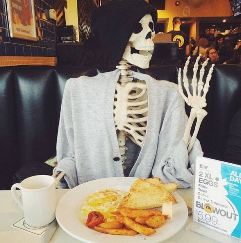 Ποιος είναι ο άνθρωπος όμως που κρύβεται πίσω από αυτόν τον χαριτωμένο θηλυκό σκελετό; Σύμφωνα με το Βuzzfeed, όταν πριν από τρεις μήνες περίπου έφθασε στο γραφείο της Dana Herlihey, μιας 30χρονης social media manager ο σκελετός, οι συνεργάτες της τον έβγαλαν μια φωτογραφία με μια κούπα Starbucks κι εκείνη για να συνεχίσει το αστείο, ανέβασε την φωτογραφία στο δικό της Instagram.