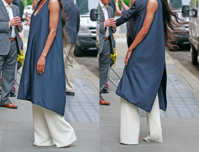 Στο σύνολο που επέλεξε να φορέσει στην εκπομπή ''The View'', πρωταγωνιστικό ρόλο κατείχε η σκούρα μπλε μακριά σε μεγάλο μέγεθος μπλούζα. Στο κάτω μέρος φόρεσε μια λευκή παντελόνα σε παρόμοιο στιλ και μέγεθος. Όλο το look διακατέχεται από minimal γραμμή και από μονοχρωμίες. Άραγε αυτό το oversized ντύσιμο θα μπει στην ομάδα του hot ή του not;