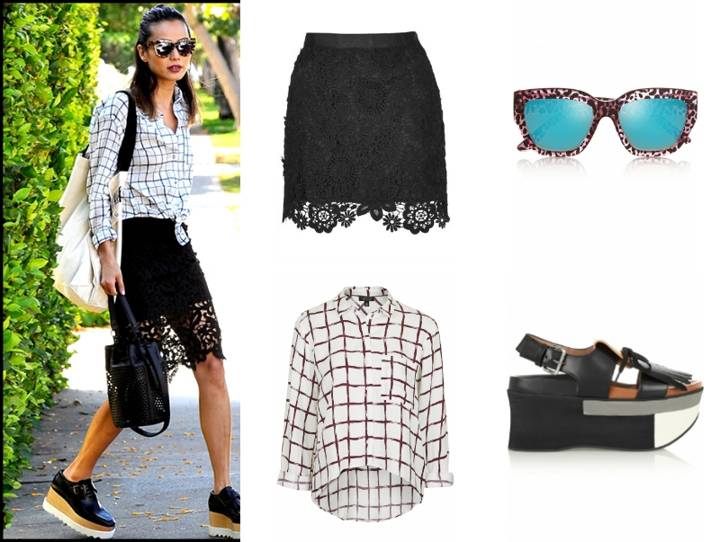 Ο φωτογραφικός φακός την συνέλαβε να περπατάει στους δρόμους του ηλιόλουστου Λος Άντζελες, με το πιο μοντέρνο outfit που είναι η αλήθεια ότι πολύ ζηλέψαμε. Το ιδιαίτερο και νέο που προτείνει με το look της η Jamie, είναι ο συνδυασμός διαφορετικών στιλ και υφασμάτων όπως του καρό τοπ και της φούστας σε μαύρη δαντέλα. Μπορεί αν τα βλέπατε ξεχωριστά, με την πρώτη ματιά να σας φαίνονταν αντίθετα και αταίριαστα αλλά η ηθοποιός μας απέδειξε περίτρανα ότι όλα μπορούν να συνδυαστούν αν υπάρχει φαντασία, γούστο και θέληση.
