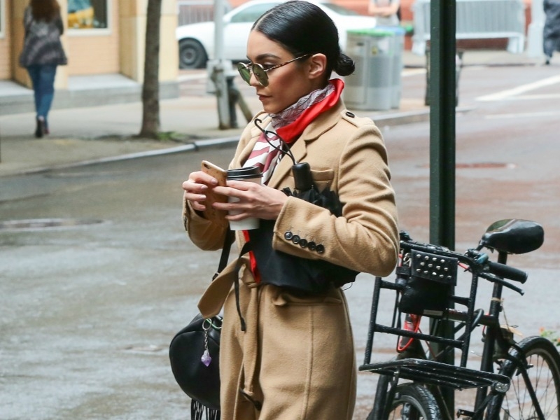Η μικροσκοπική star που παίζει τη μόδα στα δάχτυλα, τις βροχερές μέρες στη Νέα Υόρκη της αρέσει να φορά το αγαπημένο της παντελόνι και μπαλαρίνες και να τα συνδυάζει με το καμηλό παλτό και το απαραίτητο stylish φουλάρι. Nice and stylish!